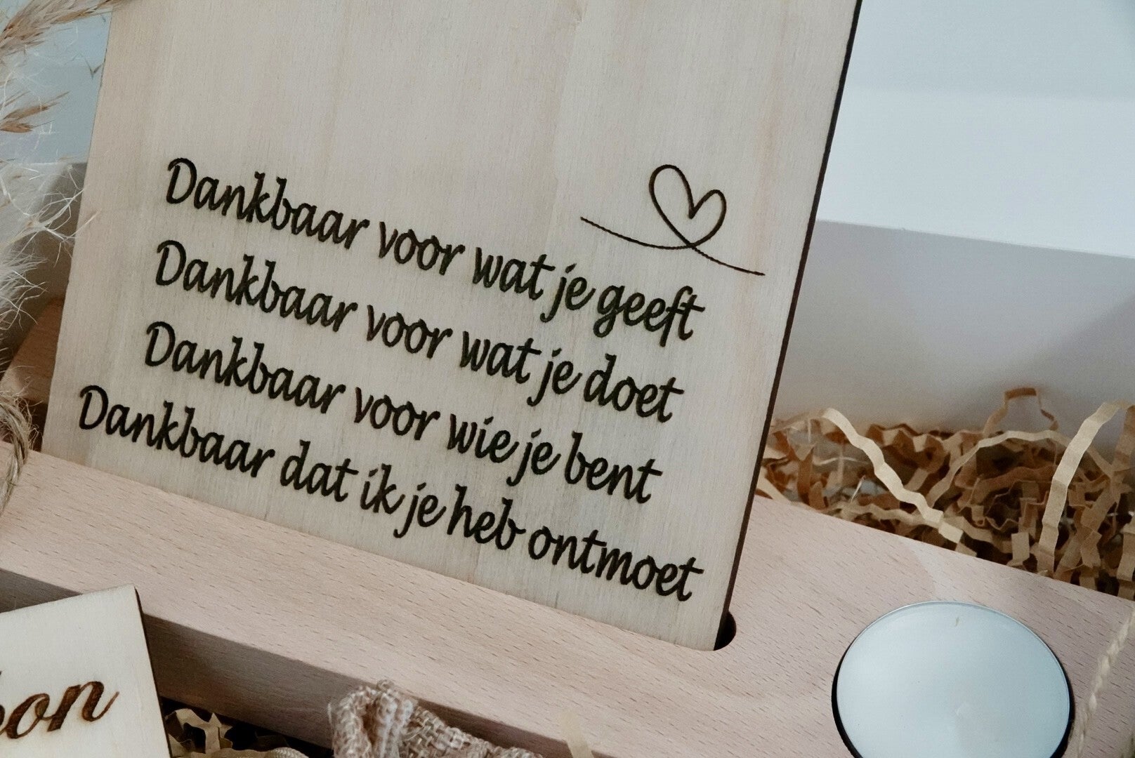 - Gepersonaliseerde tegel met houder + waxinelichtje